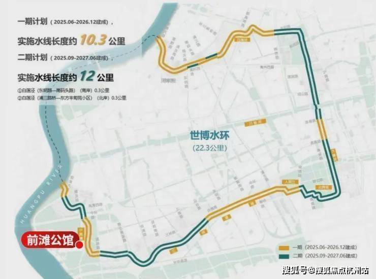 日前,继陆家嘴水环之后,世博水环一期工程正式开工,全长约22.3公里的世博水环,由白莲泾、大寨河、北界河、人民江、三林塘港、小黄浦(直线距离前滩公馆约400米)6条河道构成,与黄浦江衔接成“O”字环形。