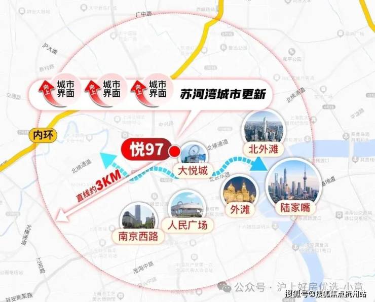 回过来看 悦97,它是真正的苏河湾核心位置,真正揽尽了苏河湾的精华!