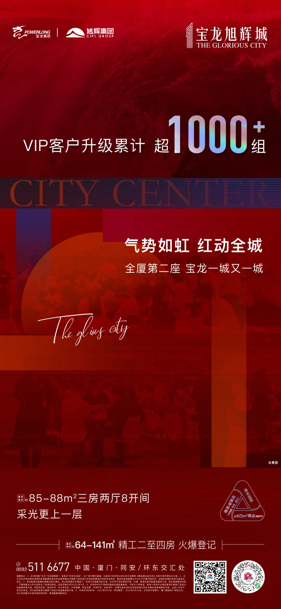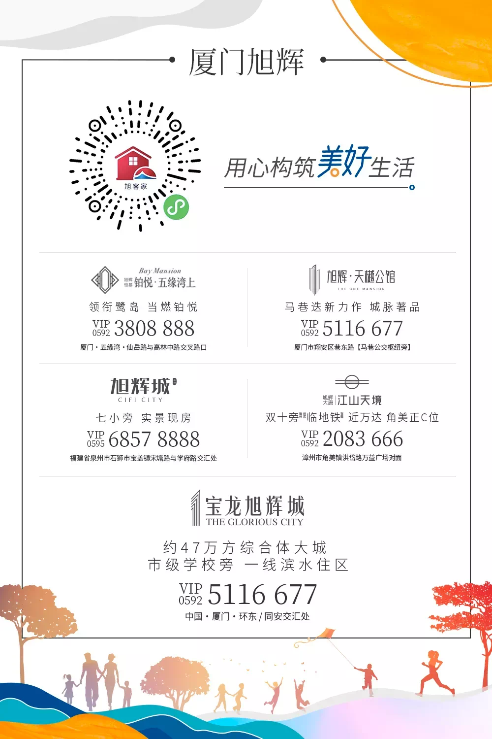 温馨提示:1、本项目推广名为“宝龙旭辉城”,备案名“同安宝龙城”。本广告为要约邀请,买卖双方的权利义务以双方签署的《商品房买卖合同》及附件等书面协议为准。2、本公司在交易过程中提供的各类配套信息均来自政府相关主管部门或机构公开信息或商业合约或现场现状,相关信息更新截止于本公示所载印制时间,后续各类相关信息可能发生变化。3、各类配套设施相关较新信息及情况,须以政府相关主管部门、机构公开较新信息为准。本页中对项目周边环境、交通、教育及其它配套设施的介绍,旨在提供相关信息,不意味着本公司对此作出了承诺和保证。信息采集时间为2021年5月。4、本资料中对于学校的描述仅做距离参考,不作为入学承诺,具体入学条件以政府教育主管部门及校方的较新政策为准。学校的名称、建成时间、开办学性质、办学规模、学位设置、开学时间、招生条件、收费标准及招生区域划定等均存在未确定或者调整的可能,出卖人对此不作任何承诺,须以政府教育主管部门及校方的较新政策为准。5、宝龙地产中国商业地产公司品牌价值TOP10信息来源于2020中国房地产企业品牌价值测评研究报告,旭辉全国地产TOP13信息来源于2021中国房地产开发企业综合实力测评成果发布会,永升物业2020年中国物业服务百强企业信息来源于2020中国物业服务百强企业研究成果。6、本资料刊印时间:2021年6月16日;有效期至:2021年6月30日。本项目开发商为:厦门展皓地产有限公司。本公司保留对本宣传修改的权利,敬请留意较新资料