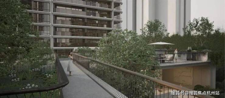 其次,双重顶级资源的加持,决定了“向上观景”的必然。项目南向直面约6公顷北外滩中央绿地,并可通过绿廊衔接约2.5公里滨江水岸线,同时无遮挡正望陆家嘴天际线。绿城精准把握这一土地特质,将社区建筑与景观层层抬升。二层空中廊道与北外滩城市连廊无缝衔接;
