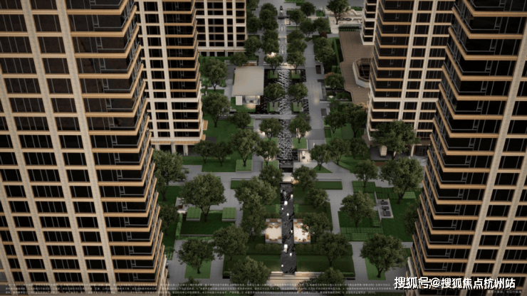 :约275米的中央景观轴从蓝图照进日常,成为推窗即见的风景。8#楼栋坐落于双轴交汇处,视野极佳,树影、天空与都市天际线在眼前平铺开来。
