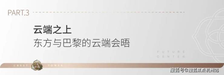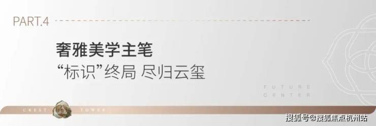 杭珹未来中心云端平层新作——云玺,即将启境!杭珹未来中心是矗立世界级中轴焦点上的黄金十字坐标,以引领匠造标准、永不止步的探索精神、持之以恒的用心付出,为城市领袖人物打造超越时代的经典作品。