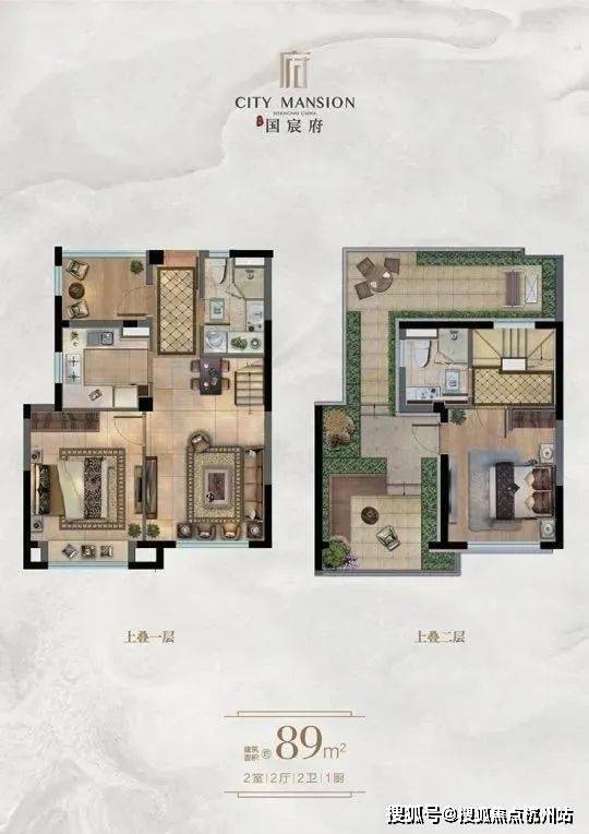 上叠建面约89平(两房两厅两卫)