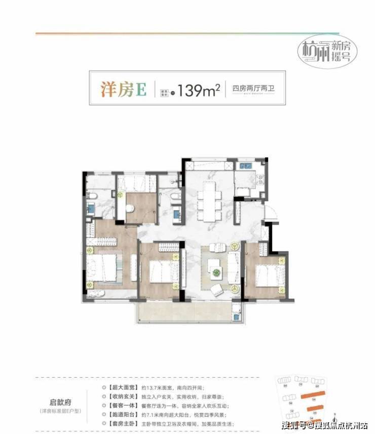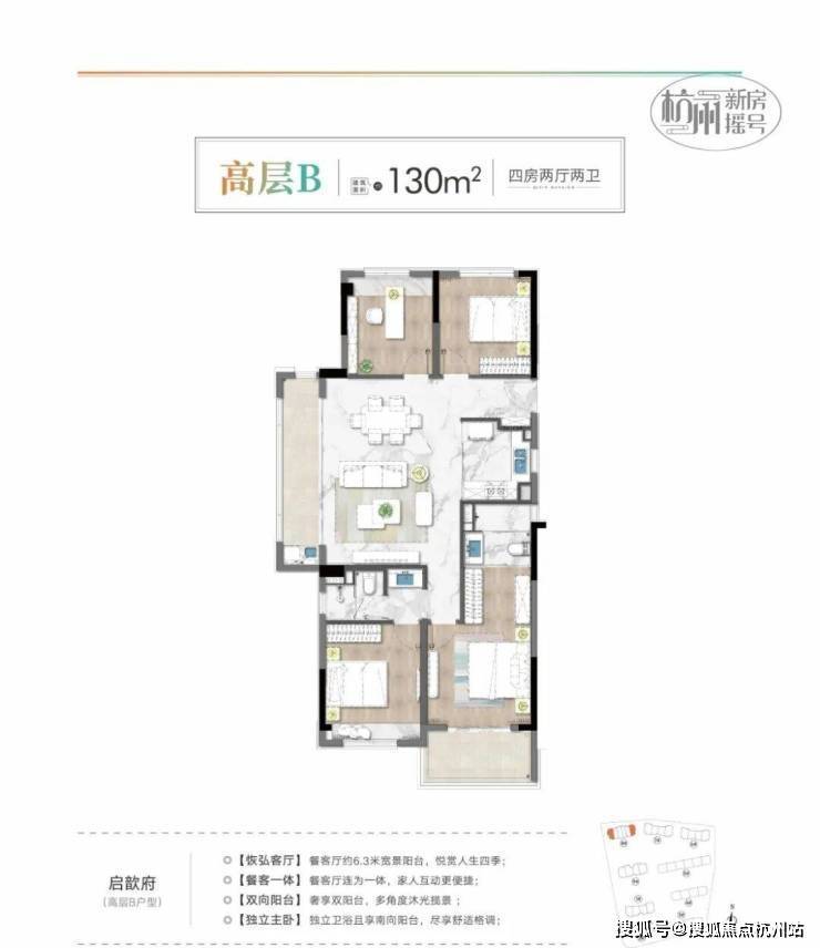 【启歆府·项目亮点】亮点1:低密度改善人文高端盘•4幢6-7F私密洋房+5幢17F小高层,“私密社区”带来更奢适的生活享受。•低密小区拥有充足的绿化和景观面积,绿意盎然、安静安逸的小区环境舒缓身心,使生活融合于自然。•开阔的楼间距,尽揽人生景致亮点2:一体板外立面+大面积玻璃•高颜值外立面,一体板加玻璃,肩比绿城滨江高端产品•外立面整洁大方,尽显大气华丽,打造板块标杆,将成为板块内一道靓丽的风景线。亮点3:丰富的园区配套•小区景观绿道,提供跑步、散步的便利。•打造有温度的架空层,全龄社交空间,包含运动健身区、缤纷童趣空间、文化交流等配套。亮点4:超高得房率,经典四叶草户型•户型方正,经典四叶草户型,大尺度客餐厅,双阳台,超高得房率80%-95%。亮点5:普通的价格买到叠墅的产品•下叠产品:地下2层5.6米,总共4层,总价400-500万左右。•上叠产品:赠送大面积露台。与周边同样项目对比巨大价差空间,买到就是赚到。•产品稀缺,小区占比例极低,未来升值潜力巨大。亮点6:同限价精装佼佼者,高端配置•东芝中央空调、电梯、厨房老板三件套、末端净水器、电热毛巾杆等。•全屋壁纸,电视机岩板背景墙。•大面积室内岩板,彰显美观大气。•摩恩智能马桶,德国进口高仪花洒。亮点7:毗邻大型商超启航城、芳正国际广场•两大商业综合体在侧,满足业主日常生活需求亮点8:与相邻板块限价有着巨大的价差•精装限价20000元/㎡,与相邻板块(良渚、勾庄)新房限价差额高达12000元/㎡,未来可期。