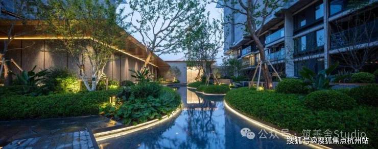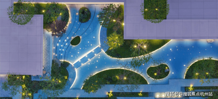 三重归家仪式。第一重,泛星大堂。第二重,聆星客厅。第三重,伴星入户花园。社区核心景观——星光溪涧。灵感取自于西湖边的九溪十八涧,把江南的山、江南的石、江南的小桥和流水都搬进星曜社区。