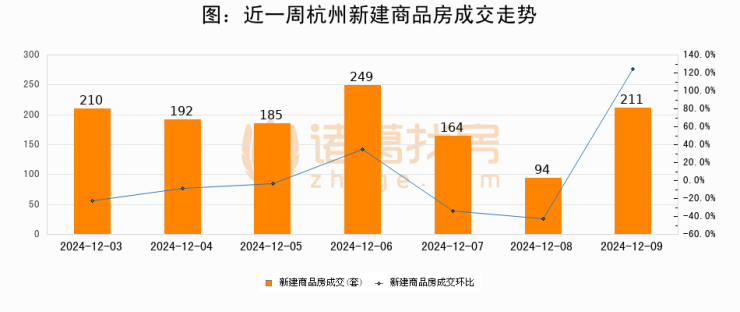 【杭州成交日报】12月09日新房成交211套、二手房362套;涨价房源41套
