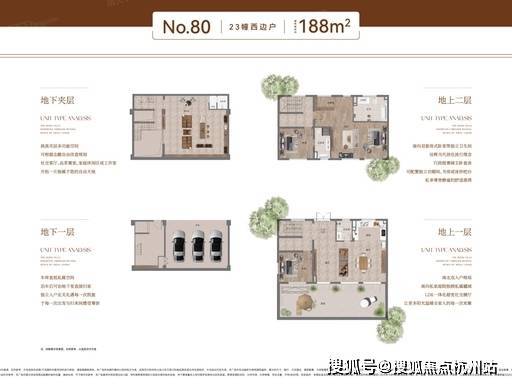 别墅户型涵盖 150㎡入门墅、170-200㎡主力墅、217-230㎡改善墅、354㎡楼王墅,采用地上两层 + 地下两层 + 阁楼 / 露台设计,100% 全套房布局、南北双入户、私家庭院、私家电梯井,顶豪居住体验拉满。地上一层规划客厅、餐厅、厨房、公卫及南向老人套房,动静分区明确,方便待客与长者起居;地上二层为卧室区,全套房设计,带独立卫浴、衣帽间、观景露台,私密性与舒适度极致;地下双层挑高约 5.8 米,可拓展为家庭影院、健身房、酒窖、私人会所;附赠私家庭院约 30-80㎡+ 阁楼 / 露台,实际使用面积可达产权面积 2 倍 +,空间可塑性极强。