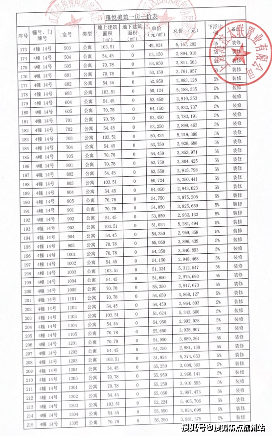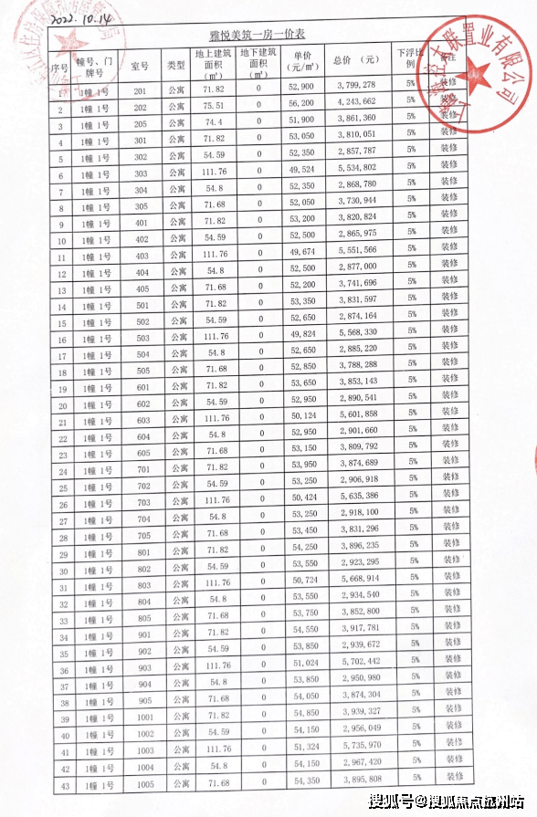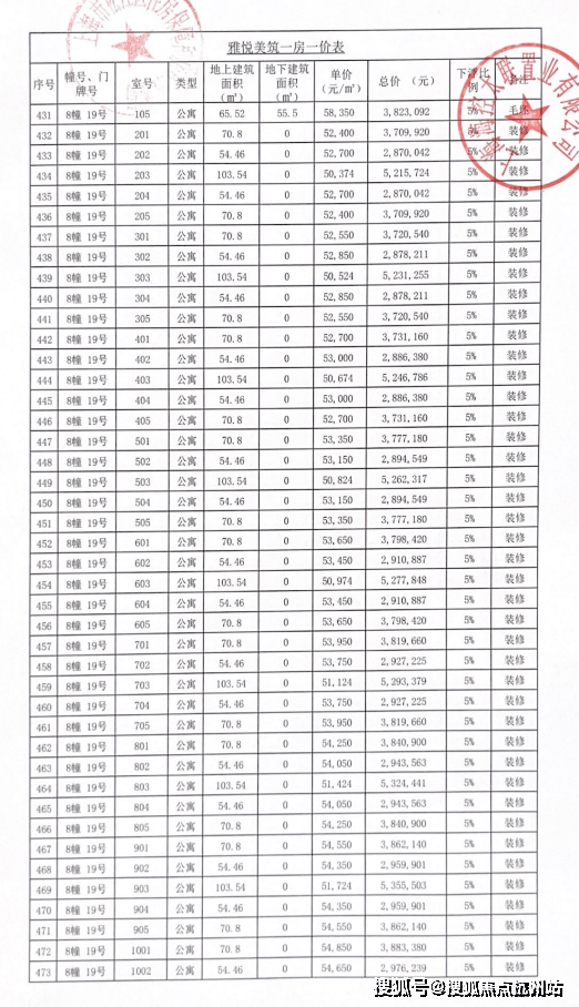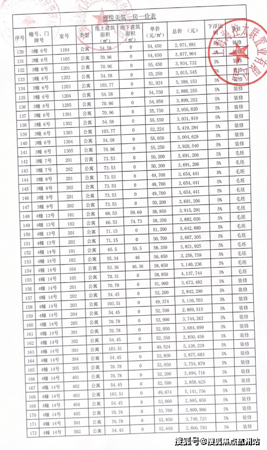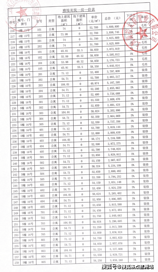 完整一房一价表如下: