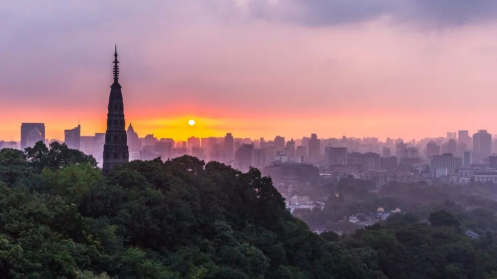 站在山顶,可以360°俯瞰西湖,要是时间够用也不着急,倒也可以在宝石山等日落,坐在岩石上看太阳从城市的边界落下,这样的浪漫也只有大自然能给予我们了