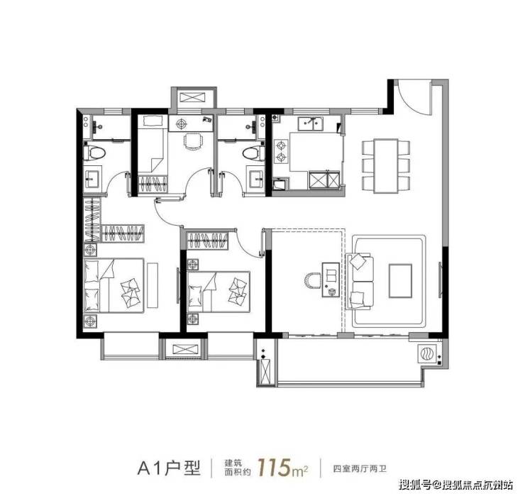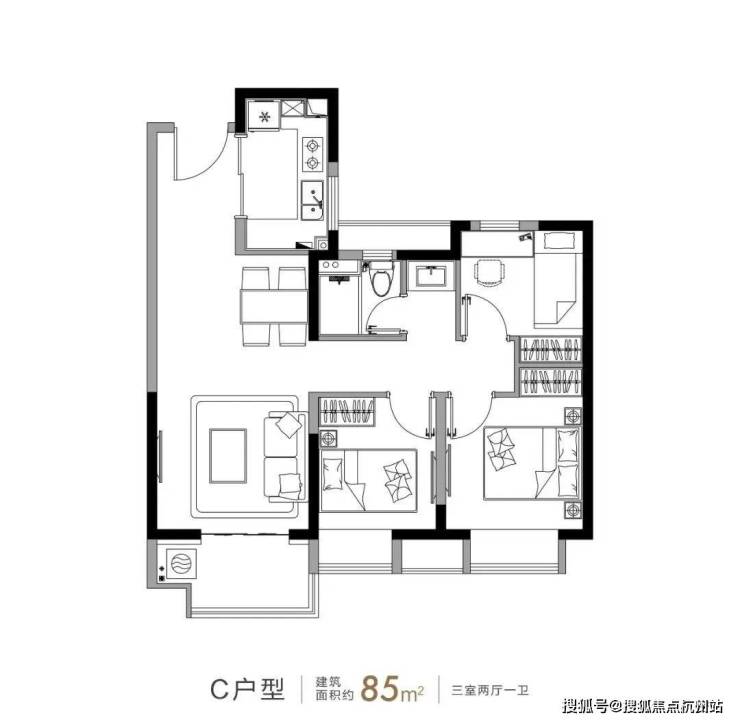 户型矩阵 :项目 主推建面约75-123㎡的两至四房户型 ,75㎡两房总价约143万起,双开间朝南,主卧带飘窗;85-95㎡三房三开间朝南,动静分离,部分配备双阳台;115-123㎡四房四开间朝南,主卧套房设计,南北通透,满足不同家庭需求。