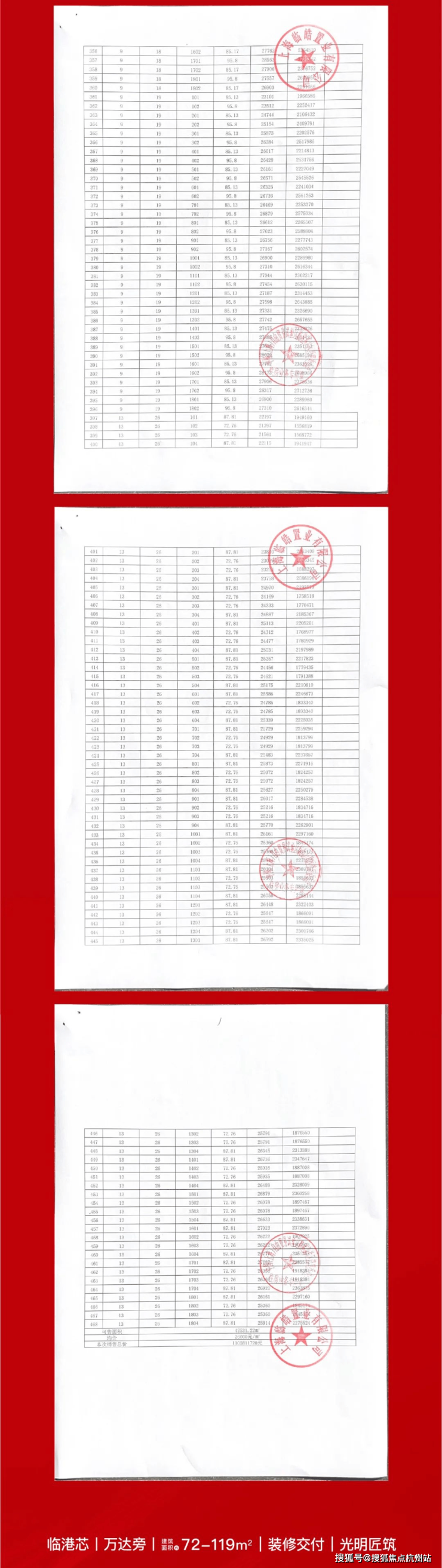 上期一房一价表