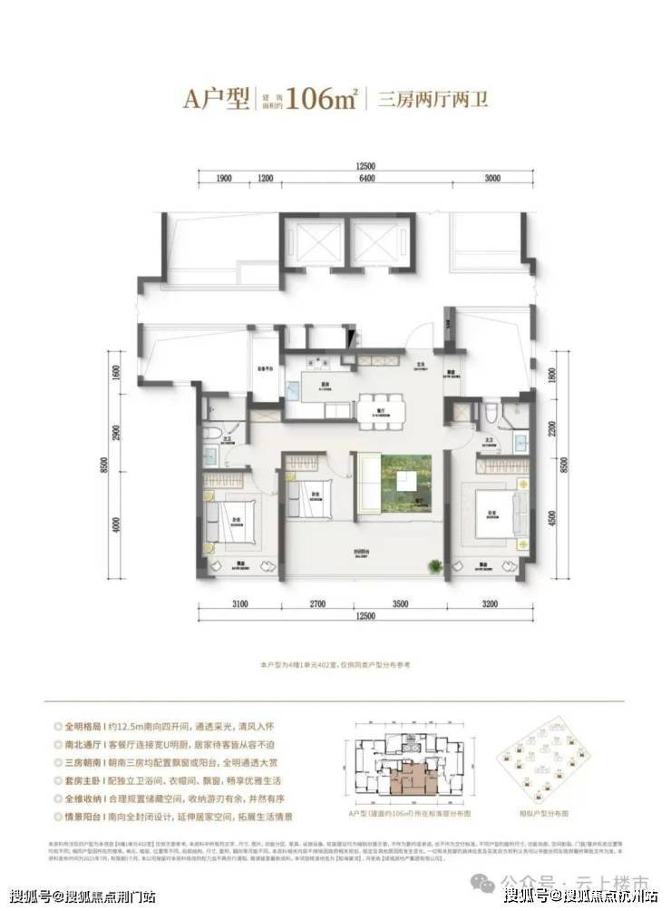 106方的起步户型,居然做了4开间朝南,南向3个房间,整个南向采光面达到了约12.5米。