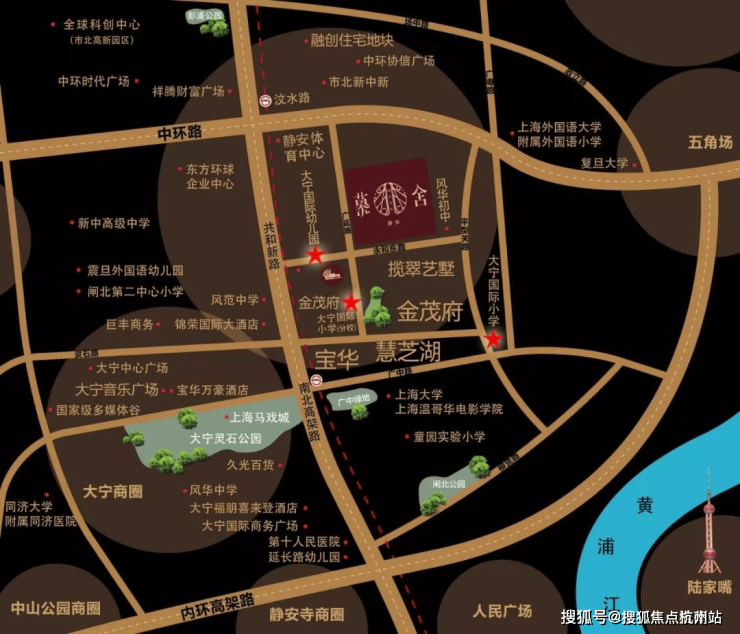 大宁揽翠艺墅(明园森林都市二期)位于新静安大宁版块,项目东临粤秀路、南临彭江路、西临共和新路高架、北临汶水路高架。