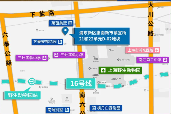 该地块位于宣桥镇,紧邻野生动物园,容积率1.2,是造低密度产品的“好料子”,不过距离16号线地铁超过1.5km。