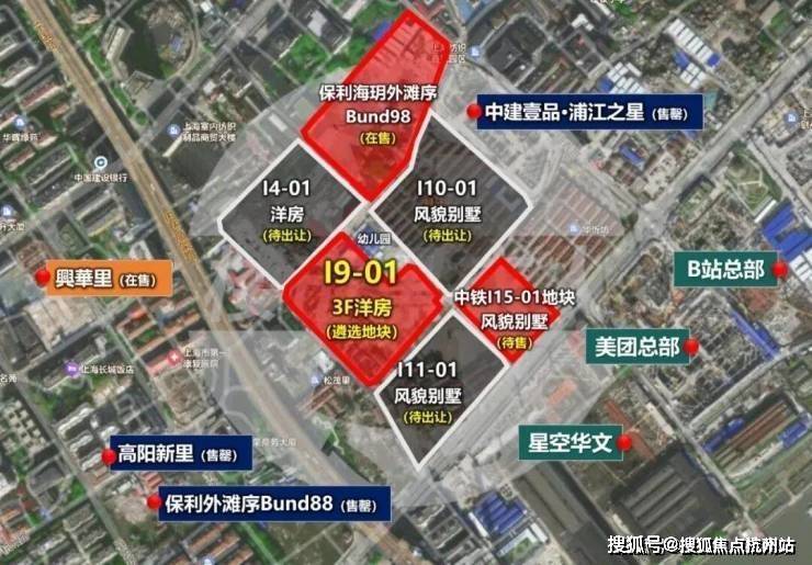 地块北侧,2024年11月28日,保利发展&上海建工以总价28.71亿拿下杨浦区N090601单元I5-01地块,楼面价81960元/㎡,溢价率17.09%。项目案名保利·海玥外滩序BUND98,于2025年5月中旬首开,两次开盘认购率均超过200%,整盘成交均价约12.7万/㎡。