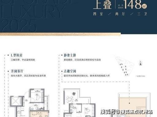 建面约 145㎡上叠户型,配备独立花园入户、L 型露台与顶层星空花园,打破传统上叠仅配阁楼的局限,实现 “空中别墅” 的居住体验。一层规划客餐厅、厨房与长辈房,避免老人上下楼不便;二层为两个套房设计,带独立卫浴,满足多子女家庭居住需求;顶层星空花园可根据业主需求灵活规划为星空书房、瑜伽室或私人露台,夜晚可俯瞰社区园林夜景,尽享私密奢适生活。