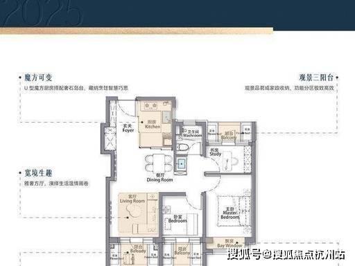 建面约 89㎡三房两厅一卫户型,是项目的入门级改善爆款,堪称 “600 万级性价比之王”。户型采用经典三开间朝南格局,南向面宽约 9.8 米,客厅连接 L 型转角阳台,引光入室,全屋通透敞亮;主卧带独立飘窗,收纳空间充足;U 型厨房动线流畅,紧邻餐厅,餐客一体布局,有效拓展家庭互动空间;全明格局,无任何暗角,无论是三口之家还是二胎刚需,都能在这里找到舒适的生活尺度。