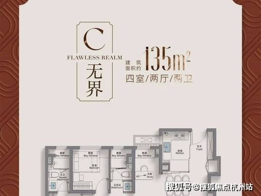 建面约 135㎡四房两厅两卫户型,专为高端改善人群量身定制,打造 “四开间朝南 + 横厅 + 双阳台” 的奢适体验。四开间朝南,南向面宽约 13.8 米,横厅面宽可达 7.2 米,搭配全景落地窗,采光与视野无可挑剔;客餐厅一体化设计,空间开阔,可承载家庭聚会、社交宴请等多元场景;主卧为豪华套房,配置独立卫浴、双台盆、步入式衣帽间与观景飘窗,尽享奢适生活;三个次卧面积均超 12㎡,可预留专属办公、休闲空间,适配三代同堂或高端社交需求,全屋全明格局,每一处空间都彰显品质与尊崇。
