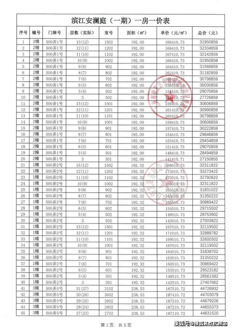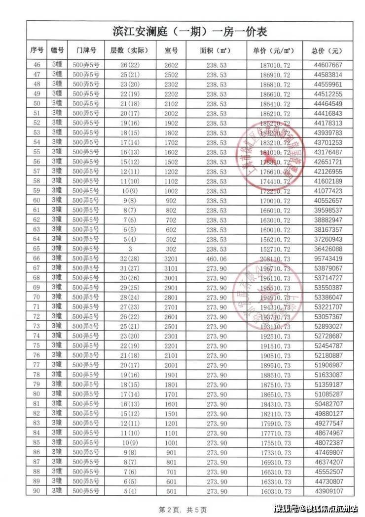 【安澜上海】一房一价表: