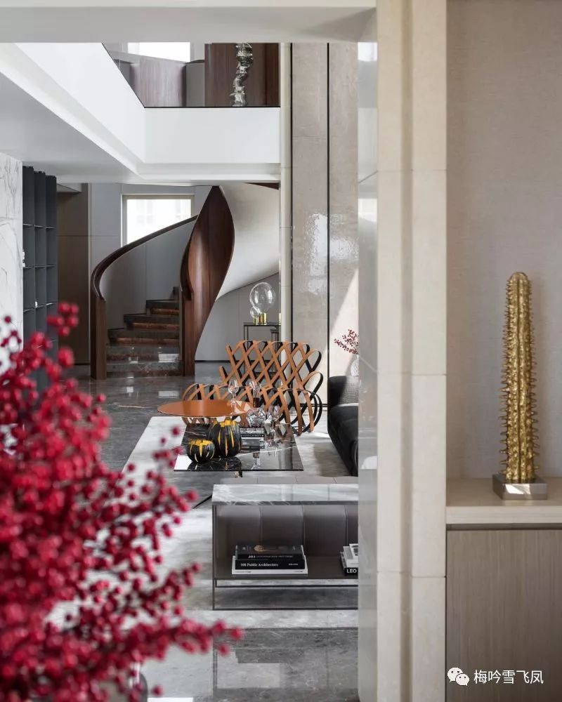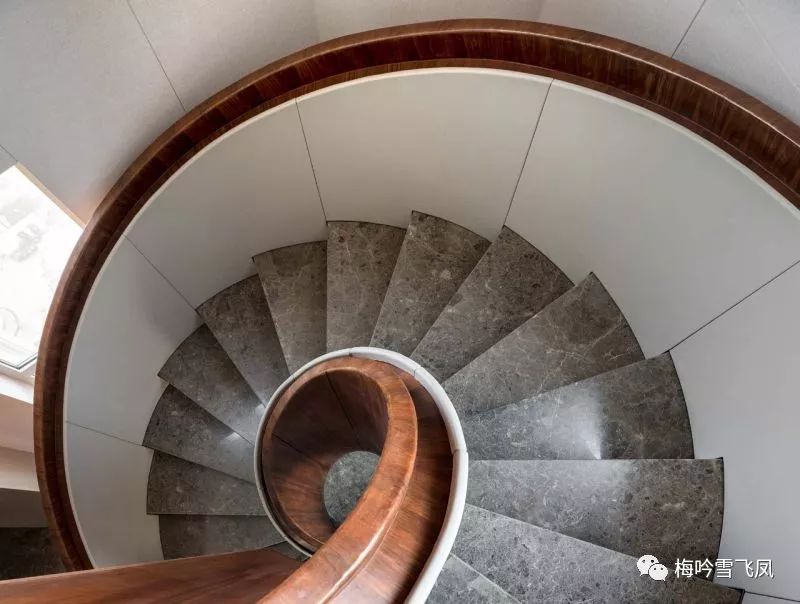 旋转楼梯,胡桃木,皮革和大理石共同营造更丰富的层次感