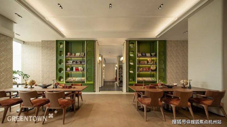 配套上,每幢住宅楼下都做了主题泛会所,未来仅供小区内业主使用,其中已经实景呈现的就有一个茶叙空间,还有个超级出圈的图书馆。