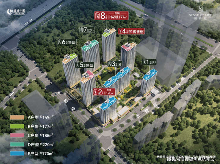 绿城中国,位于世纪城核心。建筑面积约94435.34㎡。容积率2.7。8幢16-25F高层住宅。户型面积约149㎡、170㎡、177㎡、185㎡、220㎡,总户数356户,精装交付 ,绿城物业。总价700万起,少量房源可以直接认购,均价约54000元m²。