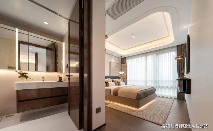 同时,不仅餐客厅有着约7米的落地门窗,书房与主卧还都坐拥270°采光面,任由晨光与暮色在家中流转,也撑起了豪门大宅的自信气场。