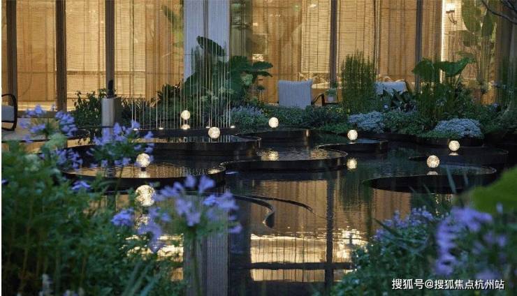 以“气泡”为灵感,莫奈画作的唯美色系作为调色盘,悬浮的玻璃气泡裹着星光生长晕染出的一层层水、一道道光,将气泡如星尘倏忽绽裂的瞬间定格于水院中,在光影漫游中舒展成诗,述说着浪漫与优雅美学的艺术花园。