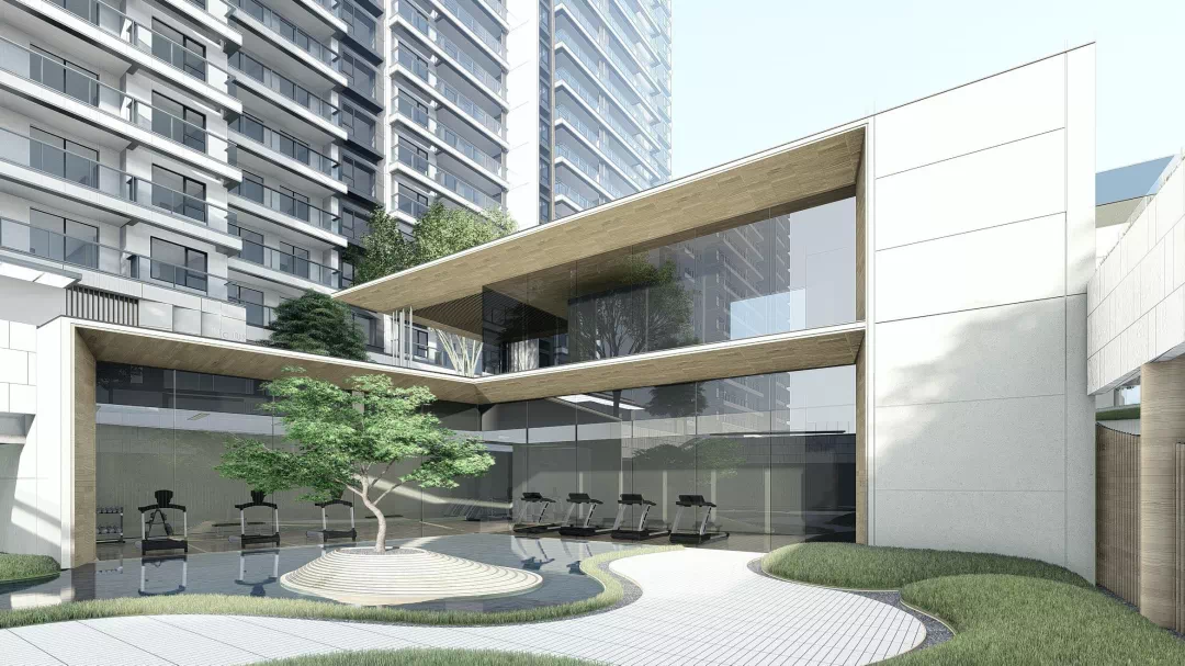 前湾·江上湾迎宾楼意向效果图(上)|Y-TIME运动空间意向效果图(下)而位于高层楼栋以南的园区景观中轴,不仅将串联起园区各大景观节点,营造“一路风景式”的归家画面;更将所有度假式景观有机链接,实现大城繁华深处的身心寄托。
