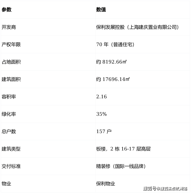 低密精装奢宅:容积率 2.16,157 户纯居社区,精装交付(国际一线品牌),户型方正、高得率(约 94%)。