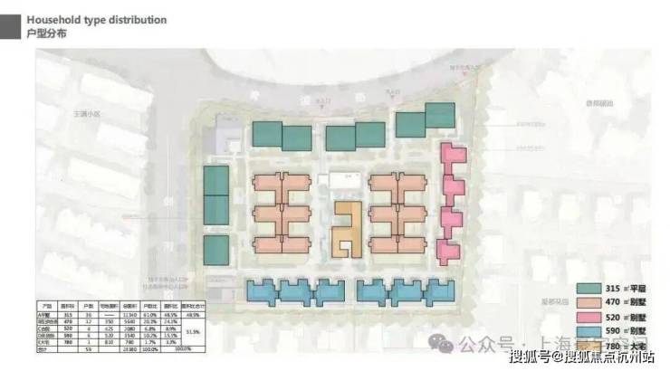 项目规划由5幢4层平层公寓、5幢3层联排别墅及1幢保障房组成。平层公寓面积段为134-350㎡、合计有45套,联排面积段为410㎡、430㎡、540㎡、560㎡、690㎡,合计有23套。