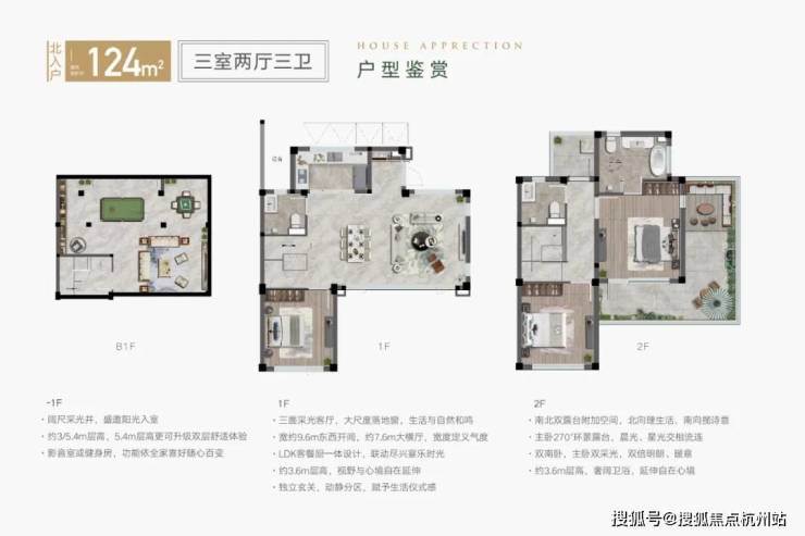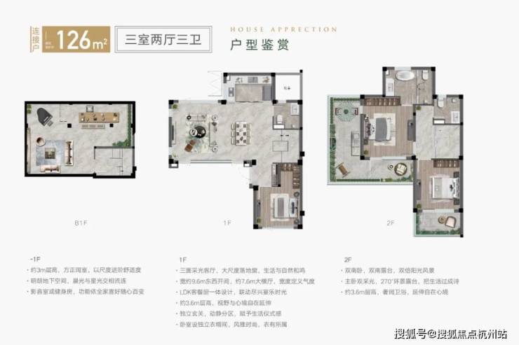 地上一、二层拥有约3.6米的尊享层高,大大提高了业主的居住舒适度,即使安装上吊顶、中央空调和地暖,也不会感觉到压抑。