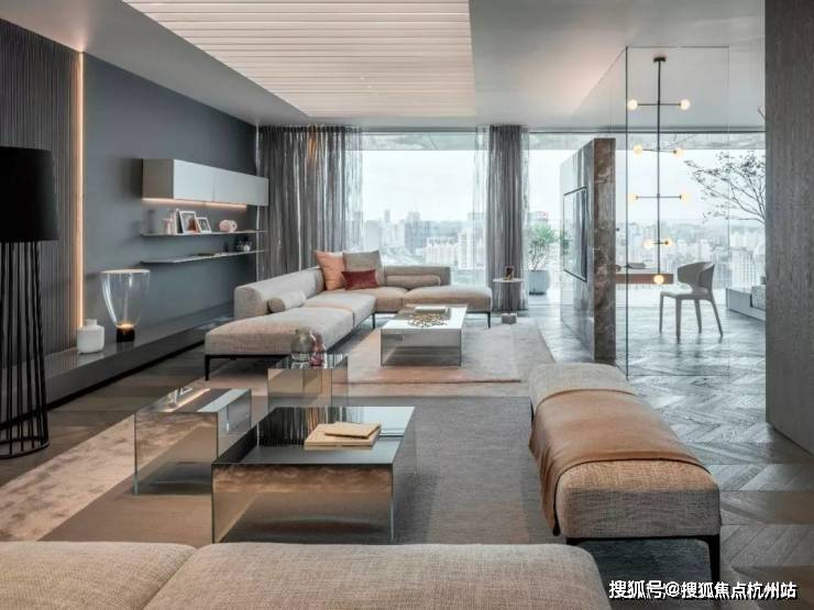 项目以德国包豪斯风格为建筑灵感,创新打造全落地玻璃墙高层住宅,由德国Obermeyer建筑设计事务所与德国Dibelius建筑事务所联袂设计。厚板框架建筑结构,开创了住宅自由定制户型的新模型(项目的科技系统都在地面或是顶棚,后期户型可以自己调整)