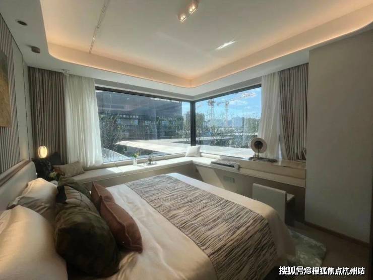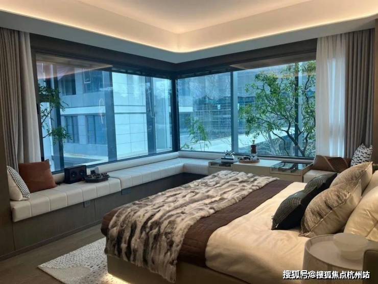 豪华酒店级别的主卧,同样配置了270°转角飘窗: