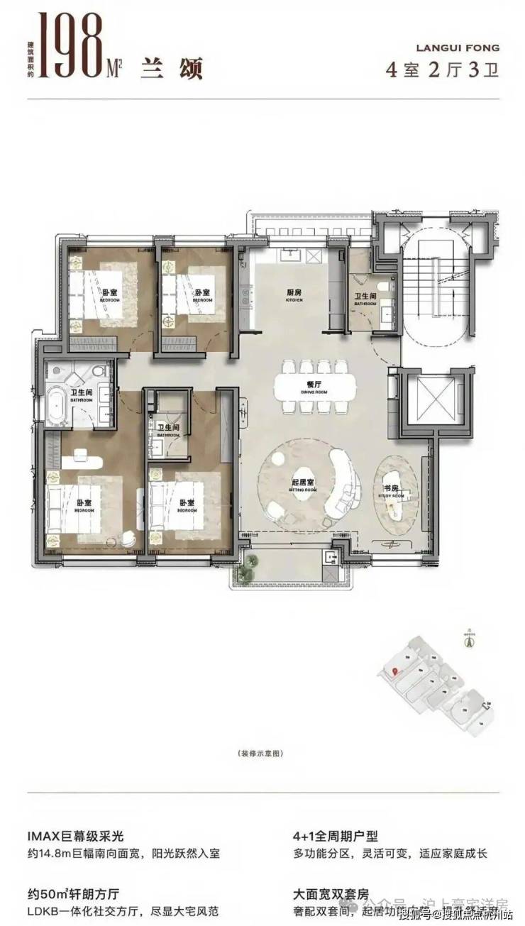4+1全周期成长性户型,使家庭成员既可以共享社交空间,又拥有充足的私密领域,满足现代家庭多样化以及多代同堂生活需求。