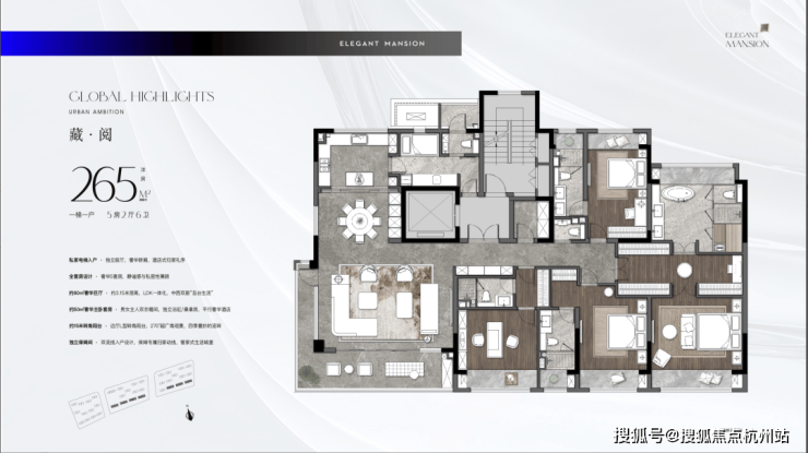 265㎡👇👇1梯1户,私家电梯入户,大宅的风范私藏了恢弘的气度。270°转角环幕巨厅,5套房设计,全景式演绎太湖新城一景一色。