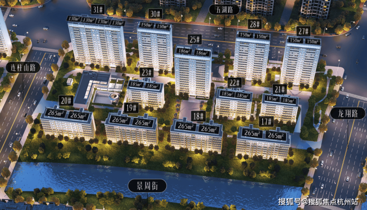 在售户型面积:有 130㎡(4 室 2 厅 2 卫)、150㎡(4 室 2 厅 2 卫)、186㎡(4 室 2 厅 3 卫)、265㎡(5 室 2 厅 5 卫)等户型。