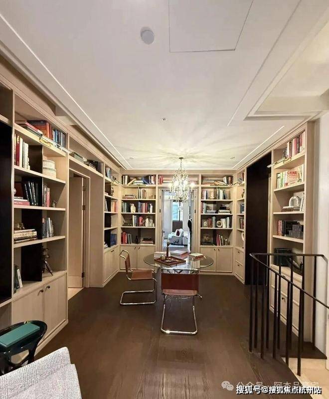 书房色调沉稳大气,精心设计的柔和灯光突显书香气韵,吸引人们长久驻足,于宁静的氛围中品味知识的力量。