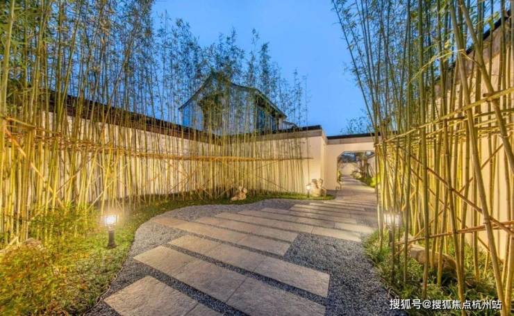 经过中心园林之后,就是通往“家”的江南巷道。 白色的墙、翠绿的竹 ,阳光投射下来与竹林形成影影绰绰的光斑投射在墙面,美不胜收。