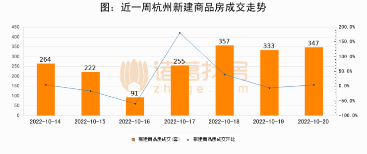 【杭州成交日报】10月20日新房成交347套、二手房186套;涨价房源20套