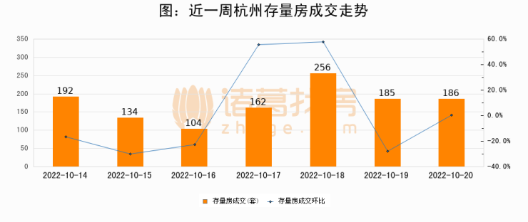 从存量房来看,2022年10月20日杭州存量房单日成交186套,比昨日增加1套,环比上涨0.5%。从近一周存量房成交来看,杭州存量房日均成交套数为174套,其中10月18日成交量较高为256套,10月20日单日成交186套,高于近一周平均水平6.9%。