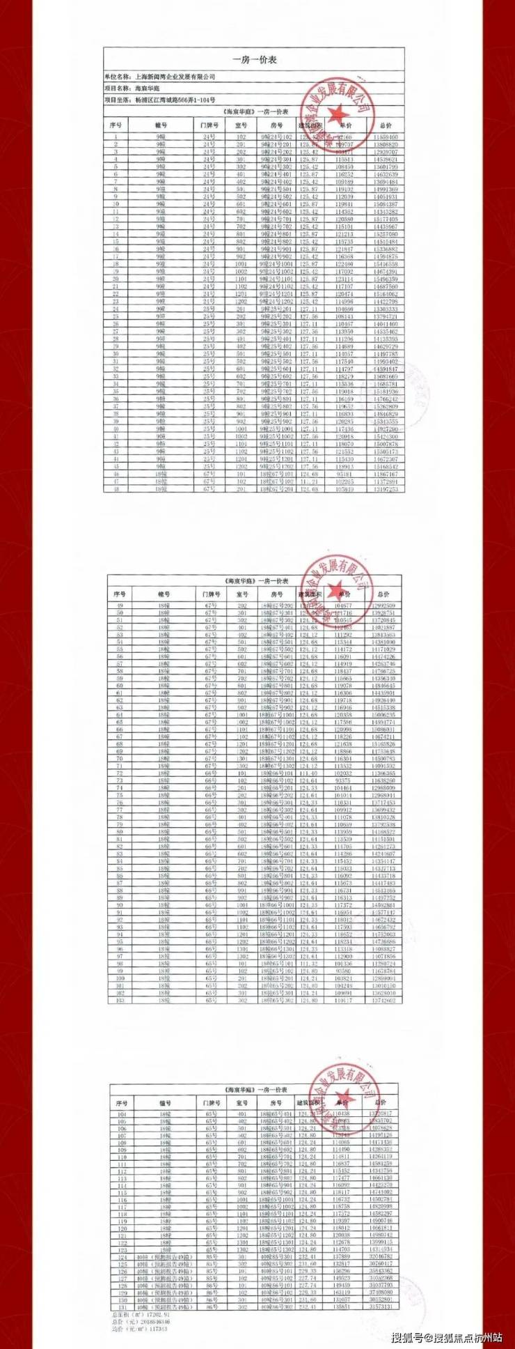 一房一价表
