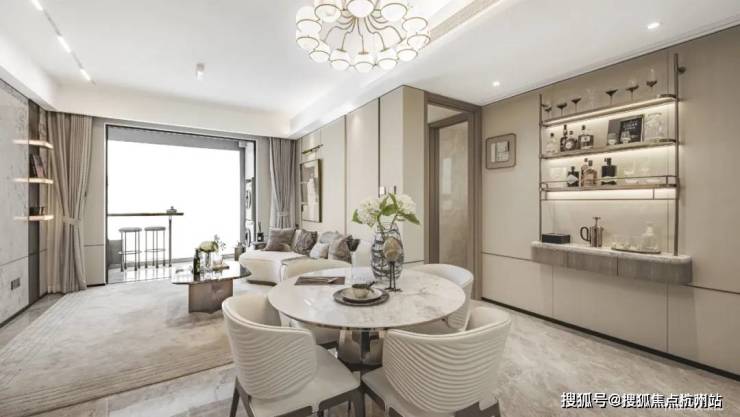 LDKG设计, 让客、餐、厨、阳台四个空间打破传统布局中的“隔阂”,几个功能区独立又互通,将空间功能进一步放大。