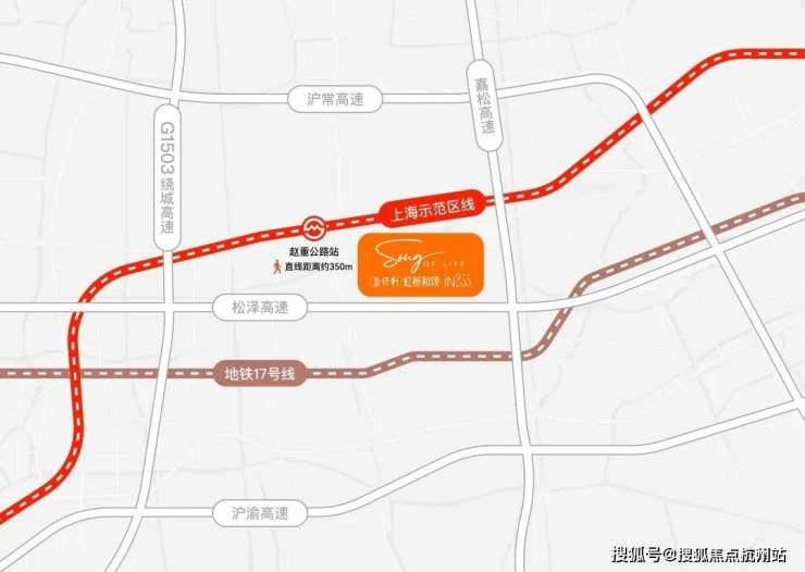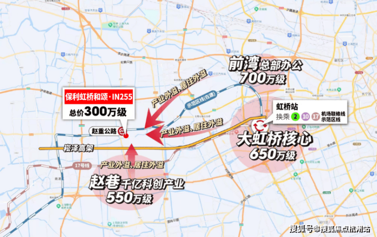 保利虹桥和颂·IN255 不仅有轨交规划正在落地,且直线距离示范区线赵重公路站(在建) 仅约350米 ,是不可多得的 真轨交盘,2站前湾、3站虹桥枢纽、5站华为基地。