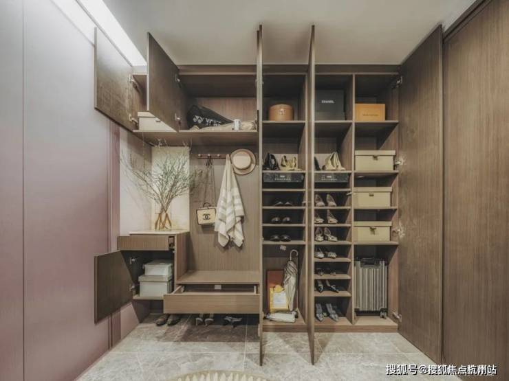 入户有 独立玄关, 出入更具仪式感的同时也增加了收纳功能。