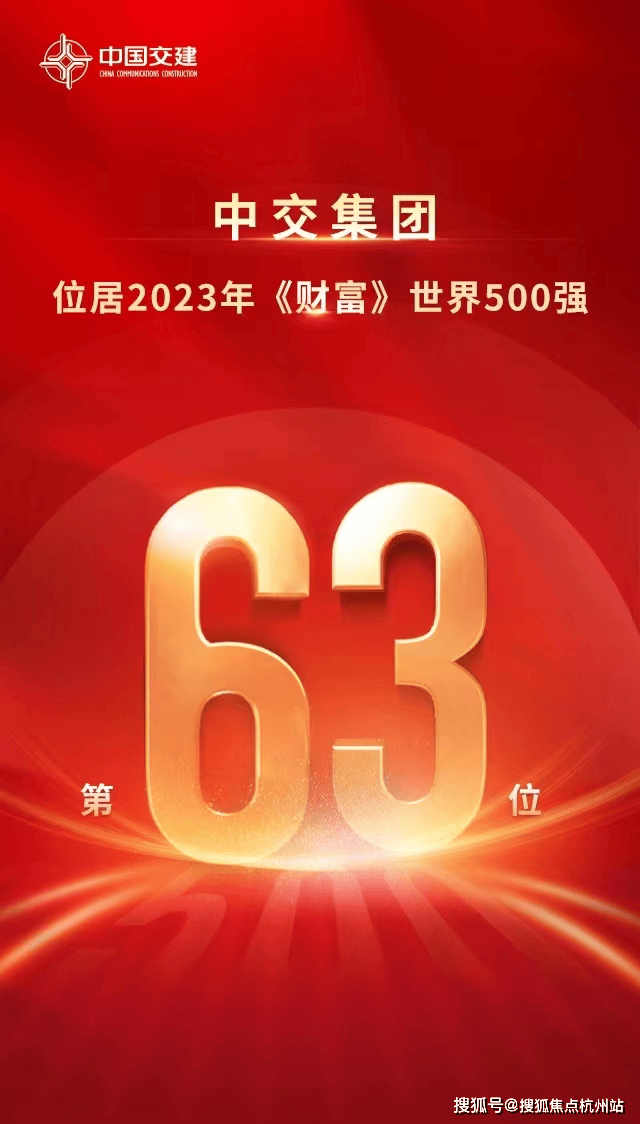 2023年《财富》世界500强排行榜揭晓, 中交集团以1382.70亿美元营业收入排名第63位!中交集团已 连续16年荣登该榜单!