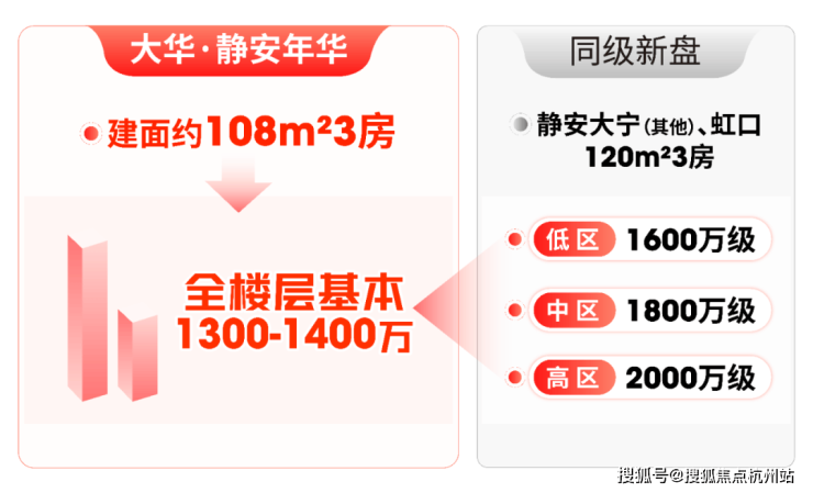 上游东斯文里预计比项目贵7万/㎡,同级虹口新房比项目贵2-3万/㎡,下游新房也比项目高1.68万/㎡,大华·静安年华安全垫拉满!