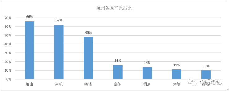 那杭州哪些地方土地多呢?请看下图,除了老城区外,平原用地占比超过60%的,只有萧山和余杭。
