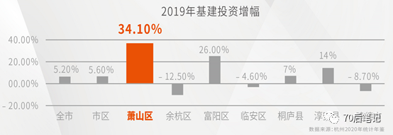 在中国,有了地,紧接着就是基建。所以放眼整个杭州,你可以发现,萧山历来就是杭州基建投入最多的地方。萧山占杭州8%的土地,却占用了杭州近20%基建投资(2017年数据)。在2019年较新的统计数据中,萧山基建增幅更是高达34%,远超其他所有区县。所以,如果漫步萧山各区,充耳的全是桩基的隆隆声,因为它就是一个大工地,这和十年前的浦东何其相似。