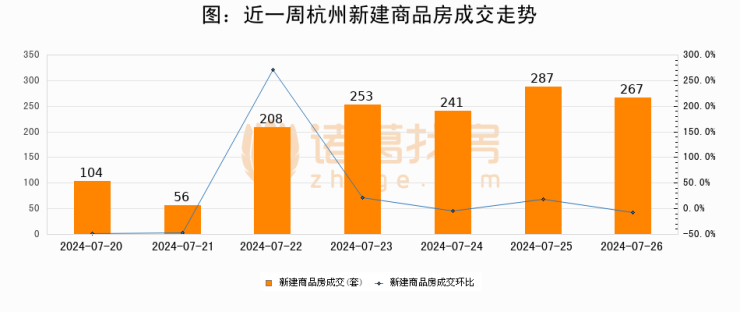 【杭州成交日报】07月26日新房成交267套、二手房266套;涨价房源77套